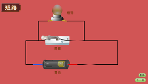 本單元在認識各種簡單電路,由斷路、通路、短路現象呈現進一步到串聯並聯的認識,接著配合畫面上的伏特計、安培計、電池及燈泡學習電壓及電流的測量,再配合電阻深入到歐姆定律的認識與應用。本學習單元適合國小四年級至國中三年級學生對基本的簡單電路認識與自我學習使用,教師亦可在教學中運用此單元內容進行教學與評量。
