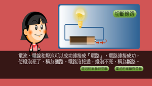 透過動畫認識電池與燈泡的串聯與並聯。