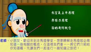本學習物件主要是從熱空氣和摩擦力的原理來教學生,並且有模擬和詳細的步驟來製作走馬燈。也有走馬燈詳細的各部位名稱可以學習。學習結束後,也可利用有趣的評量來測驗自己學習的成果。