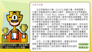 本學習物件主要是由各種不同材料的建築,來讓學生學習到各種時期不同建築的結構與材料。並利用抗震小遊戲,來讓學生模擬地震時,房屋的受力情形。