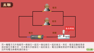 本單元在認識各種簡單電路,由斷路、通路、短路現象呈現進一步到串聯並聯的認識,接著配合畫面上的伏特計、安培計、電池及燈泡學習電壓及電流的測量,再配合電阻深入到歐姆定律的認識與應用。本學習單元適合國小四年級至國中三年級學生對基本的簡單電路認識與自我學習使用,教師亦可在教學中運用此單元內容進行教學與評量。