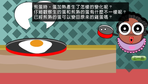 本單元從冰淇淋融化了、情人節的巧克力、烤肉等生活實例來認識熱對物質的影響,而熱與能量有很大的相關,在本單元中也透過動畫讓學生對熱有基本的理解;並透過「焢窯」、「爆米花」、「煎蛋」等單元來提供學生模擬試驗的機會。