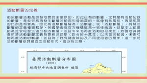 通常與地震一同發生的斷層,也一併介紹,最後再說明地震發生所產生的災害與防護方式。