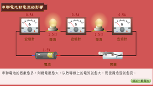 本單元在認識各種簡單電路,由斷路、通路、短路現象呈現進一步到串聯並聯的認識,接著配合畫面上的伏特計、安培計、電池及燈泡學習電壓及電流的測量,再配合電阻深入到歐姆定律的認識與應用。本學習單元適合國小四年級至國中三年級學生對基本的簡單電路認識與自我學習使用,教師亦可在教學中運用此單元內容進行教學與評量。