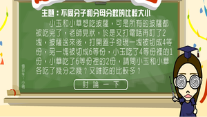 本學習單元適合國小中高年級學生自我學習,內容包含分母相同時的比較大小和分子相同時的比較大小,以及分子和分母不同時如何進行分數的比較大小,課程的設計以披薩作為學習內容的題材,結合學習者日常生活中的事物,拉近學習者對數學的感受。教師亦可在教學中運用此單元內容進行教學與評量。