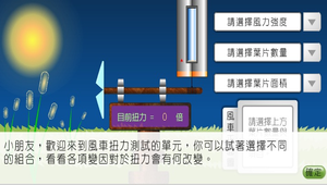 本學習物件主要是從風力、面積、扭力配合MST來分類學習。接著有詳細的製作步驟來讓學生製作簡易的風車。並利用有趣的實驗,讓學生製作出富含創意的風車,接著並體驗風力發電以及風車與力量的關係。