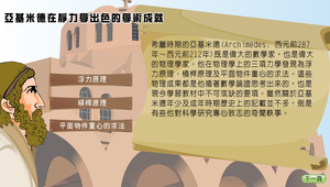 透過動畫認識科學家亞基米德在靜力學出色的學術成就。