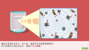 本單元以水的物理變化與化學性質為主軸,發展關於水資源的教學活動與素材,結合環保意識之人文取向,以加強學生對環境資源的理解與重視,而其中飲用水與人類生活更有密切關聯,因此本單元結合生活中的用水,讓學生從生活中連結科學知識,並強化環境保護概念。