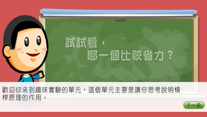 本學習物件主要是從槓桿和齒輪以及凸軸和連桿的原理、應用,配合MST來分類學習。接著有模擬讓學生進行練習、並有大富翁遊戲來進行評量。