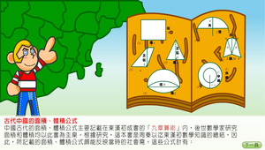 本單元包含有適合小學一年級到六年級學生程度之住體單元,本單元有長方體、正方體和圓柱體的體積以及表面積的學習內容,透過電腦動態畫面的呈現,說明柱体表面積和體積的公式建立的過程,藉由視覺化強化學生柱體表面積和體積的概念,協助學習者在本單元內容的學習。
