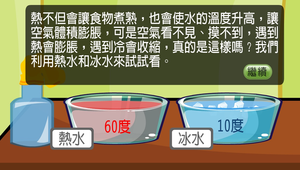 本單元從冰淇淋融化了、情人節的巧克力、烤肉等生活實例來認識熱對物質的影響,而熱與能量有很大的相關,在本單元中也透過動畫讓學生對熱有基本的理解;並透過「焢窯」、「爆米花」、「煎蛋」等單元來提供學生模擬試驗的機會。