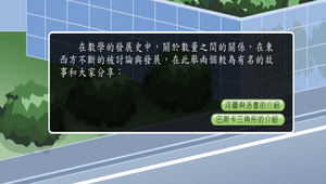 本單元包含有適合六年級、七年級學生程度的學習,本單元透過故事人物的對話,說明數量關係,並輔以動態畫面的呈現,以日常生活的常會遇到的情境,做為學習內容的主題架構,逐漸引入數量關係的內容主題,藉由視覺化強化學生對數量關係的了解與認識,協助學習者在本單元內容的學習。
