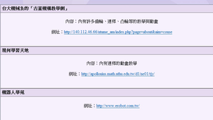 本學習物件主要是從槓桿和齒輪以及凸軸和連桿的原理、應用,配合MST來分類學習。接著有模擬讓學生進行練習、並有大富翁遊戲來進行評量。
