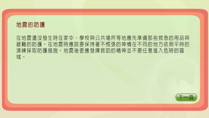 本單元介紹自然界災害之ㄧ:地震。說明地震的發生原因與描述地震的幾個名詞:震源、震央、震度、規模等。通常與地震一同發生的斷層,也一併介紹,最後再說明地震發生所產生的災害與防護方式。適合國中以上學生自我學習,小學四、五年級由教師教導較為恰當。教師亦可運用此單元內容進行教學與評量。