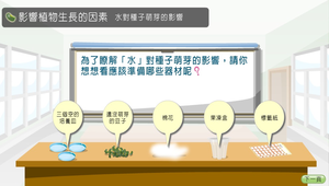 藉由投影片去思考如何設計水對種子萌芽的影響的實驗。