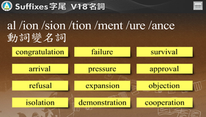 用動畫介紹以al /ion /sion /tion /ment /ure /ance 為字尾的單字