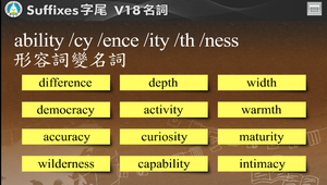 用動畫介紹以ability /cy /ence /ity /th /ness 為字尾的單字