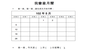 學習內容:N-1-6 日常時間用語:以操作活動為主。簡單日期報讀「幾月幾日」;「明天」、「今天」、「昨天」;「上午」、「中午」、「下午」、「晚上」。簡單時刻報讀「整點」與「半點」。