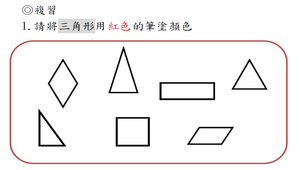 學習表現:s-Ⅱ-3 透過平面圖形的構成要素,認識常見三角形、常見四邊形與圓。