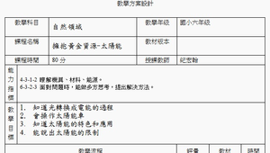 教學目標: 1.知道光轉換成電能的過程 2.會操作太陽能車 3.知道太陽能的特色和應用 4.能說出太陽能的限制