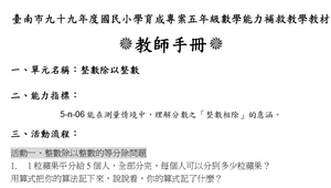 臺南市九十八年度國民小學育成專案五年級數學能力 補教教學教材