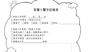 請小朋友寫出家裡各項家事的負責人,並畫出正在做家事的自己。