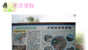 利用圖片,說明河道侵蝕情況,途中地點為大峽谷及萬年峽谷(雲林縣)