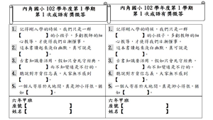 配合學校成語教學,進行有獎徵答學習單。