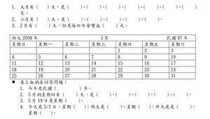 學習內容:N-1-6 日常時間用語:以操作活動為主。簡單日期報讀「幾月幾日」;「明天」、「今天」、「昨天」;「上午」、「中午」、「下午」、「晚上」。簡單時刻報讀「整點」與「半點」。