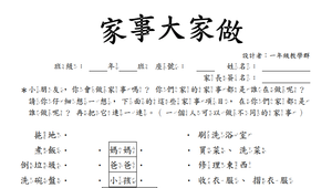 藉由繪本朱家故事認識家事的活動,體驗家事負荷的沉重,讓學生了解家庭成員的角色分工,不受性別限制的意義,並能對家事進行公平合理的安排,最後藉兩短片來讓孩子進一步了解共同分擔家事的意義,而不是幫媽媽做家事。