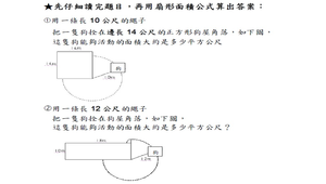 配合學生的生活經驗,加上實作,學習運用扇形面積所組成的複合圖形面積.