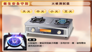 《料理虛擬實驗室-衛生安全守則》圖文說明-火侯測試區之大火
