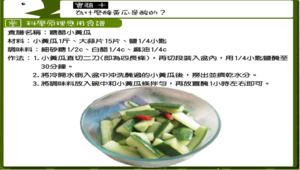 學習表現:家1b-Ⅴ-1 評估食材特性,掌握食物衛生與安全原則,運用適切烹調技巧,進行膳食設計。