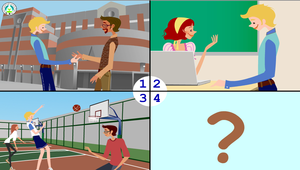 教師提供一則四格連環圖,並在最後一格留下問號,引導學生使用連環圖中提示及課堂講解過的搭配詞,寫成一篇120-150字的作文。