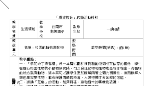 一、「紫花地丁與螞蟻」是一本講述關於植物和動物間相互依存的關係,學生在進行校園植物與小動物探索時,可以發現動物和植物總是相伴相生,有植物的地方就有動物,這本書可以讓學生更加瞭解兩著之間的關連性,進而瞭解人類也是需要植物,唯有保護周遭的環境,人類物種才有延續的可能。二、透過「蒐集」的活動,加深對花、草和樹木的興趣和認識。三、透過親近校園植物的活動,由喜歡而愛惜植物。四、學生對校園環境,已有一定的瞭解。五、學生能分辨出何者屬於自然物、何者屬於人造物。