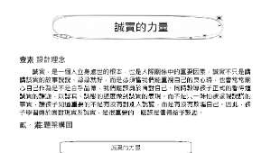 1. 認識誠實的相關新聞及故事。 2. 了解誠實的重要及運用在生活中。3. 能維持自己的良好信用原則及行為,並且誠懇待人。