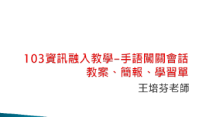 606王培芬103資訊融入教學-手語闖關會話教案、簡報、學習單.zip (1.15KB)