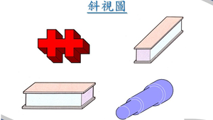 利用簡報播放各種等角圖、二等角圖、不等角圖之立體圖的呈現方式及使用場合,藉此說明畫立體圖有多種方式,並強調等角圖是工程圖最常用的立體圖。