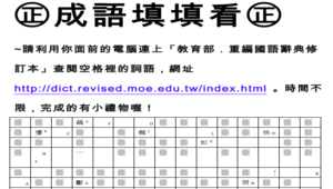 一般人在日常生活中常常遇到注音或國字不會寫的狀況,但是礙於手邊沒有紙本辭典,所以對不會寫的字也就不了了之。其實教育部已大致建構部分線上辭典,只是民眾不知道,使用率也就不高。為配合教育部推廣「線上國語辭典」,故設計相關教案以引起一般民眾或在校學生使用線上國語辭典查詢國字或注音的興趣。