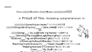 本校規定五年級上下學期各要學唱兩首英文歌, 一首為聖誕歌謠Jingle Bell, 一首為proud of you 於是我將兩首歌詞延伸用來做聽力測驗 除了欣賞好聽的歌詞 我將較簡單的Jingle bell 歌詞裡的sight word選出 用來當填空 將proud of you 歌詞裡學生學過或容易混淆的單字用二選一以圈選方式來作答 增加趣味及挑戰