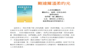 藉由剛達爾溫柔的光之繪本書,將孩子的視野帶至遙遠的非洲,讓孩子藉由書中作者的經歷,也能體會糧食不足,小小的分享也能帶給人大大的光,溫暖每個人心靈,讓孩子更能知福、惜福,感恩和助人。