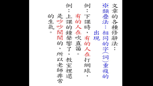 利用PPT解釋各種修辭法並提供範例供學生參考。