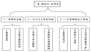 本教學活動設計從中年級「家鄉」概念出發,以「嘉義縣市」為學習中心,統整不同單元的主題,將家鄉的休閒活動與家鄉的交通兩單元相結合,跳脫以往單元間不相連貫的學習模式,以學生為學習主體,教師不斷從旁引導與鼓勵,演譯出新的教學活動設計。