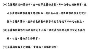 (一)語文領域:藉由購物活動,讓學生練習注音符號和國字的認讀與拼讀能力。