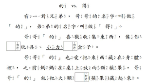 以故事串起「的」與「得」的用法,加深學生的印象。