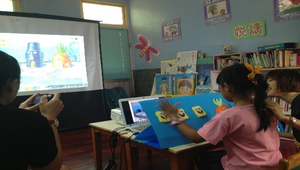 六、設計動機:有鑑於上述適用對象開始接觸有關方向的概念,但思考到一次即教導上、下、左、中、右過於繁雜,因此先以生活中較常使用到的左、中右為教學重點,加上Scratch學習社群兼具創意的多變性及分享的便利性,因此製作出此一遊戲;另考慮到讓此年齡段的學生使用電腦可能過早甚至太難,所以另外使用了makey makey線材及自製教具輔助輔助,讓整個遊戲能更生動並貼近學生生活。