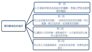 於綠色的海洋文中認識生字與新詞,並完整的表達自己看過的稻田景象和想法。