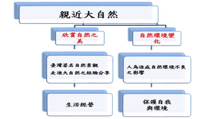 了解臺灣自然景觀,學會欣賞自然之美,進一步享受親近大自然的趣味,並探討大自然變化的現象與生活的關係,察覺現今大自然所遭受的破壞,思考自然環境的改變對生活的影響,探討環境改變與破壞可能帶來的危險,提出保護與改善環境的方法,培養愛護自然環境的情操。