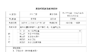 學習內容:N-6-6 比與比值:異類量的比與同類量的比之比值的意義。理解相等的比中牽涉到的兩種倍數關係(比例思考的基礎)。解決比的應用問題。