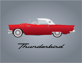 The 1957 was the last year of production for the Ford Thunderbird as a two-seat roadster. This illustration is very faithful to the proper dimensions of that classic vehicle.